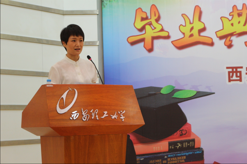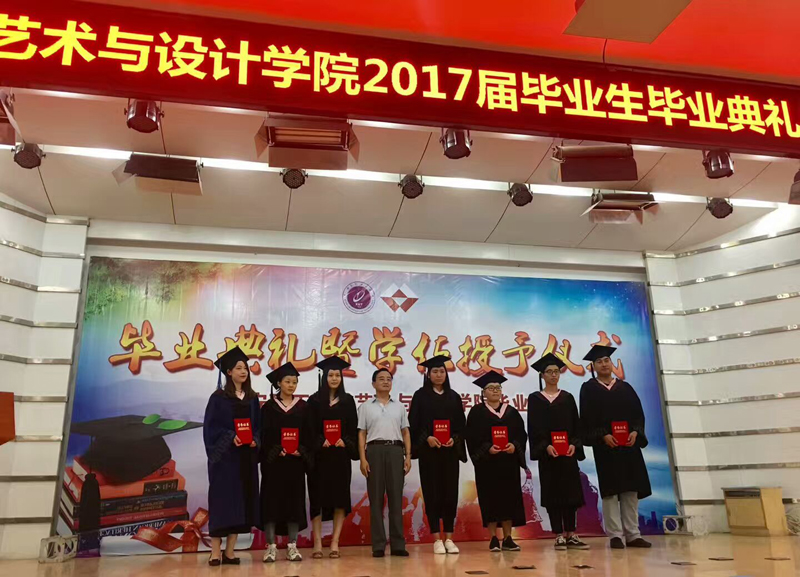 薛艳敏经理在毕业典礼暨学位授予仪式上致辞。她代表全院师生向圆满完成学业的2017届毕业生表示衷心的祝贺。伴随着悠美的旋律,她和同学们一起回顾了老员工活的点点滴滴,回顾了学院和老师们取得的成绩。薛经理嘱托即将走上工作岗位的毕业生们,走向成功的路不会一帆风顺,她希望大家保持对设计和艺术的关注和热爱,有迎接挑战的勇气和必胜的意志力,培养良好的团队合作精神,认准目标、持之以恒,用创意去点亮生活,提升品质,为国家五千年的文化积淀增加魅力。
