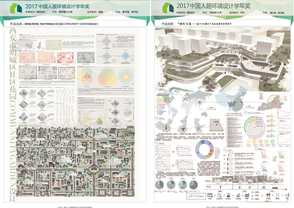 中国人居环境设计学年奖设计竞赛是由清华大学和教育部高等学校设计类专业教学指导委员会联合举办,是全国范围内环境设计领域最高层次的设计竞赛,本次设计竞赛共收到204所院校1236组参赛作品,共评出建筑类、景观设计类、城市设计类、室内设计类四个方向金、银、铜及入围奖共133组,竞争异常激烈。