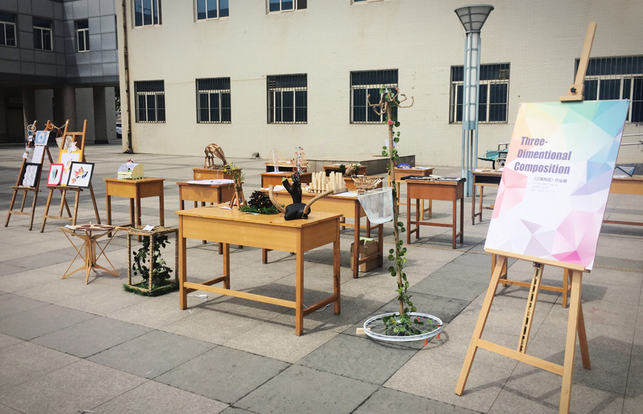 级产品设计专业《三维构成》课程作业展在曲江校区逸夫科技信息馆前成功举办。