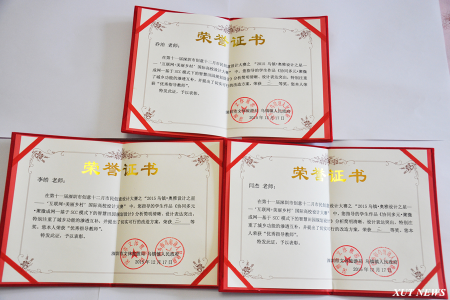 12月25日,在浙江省桐乡市乌镇举办的2015乌镇·奥雅设计之星颁奖典礼暨“互联网+美丽乡村”高峰论坛中,公司环艺系两组员工作品经过激烈角逐,顺利通过最终评选,分别荣获本次设计大赛三等奖和最佳逻辑奖。公司环艺系乔治、李皓、闫杰老师也被评为本次大赛优秀指导教师。