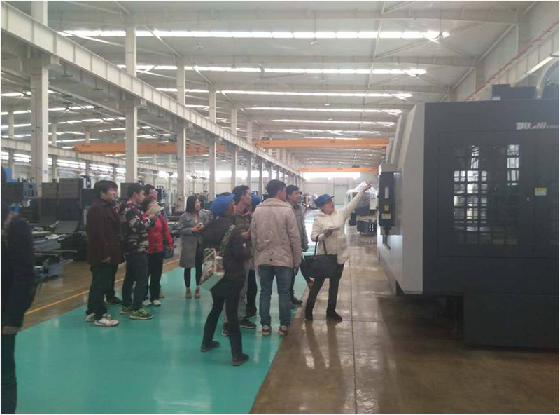 此次考察,由机床厂相关技术人员带领参观了车床制作、组装及运输车间,员工们认真听取技术人员的介绍,同时提出关于设计中有可能遇到的问题,并做好详细记录,从中寻找可行的设计思路。
