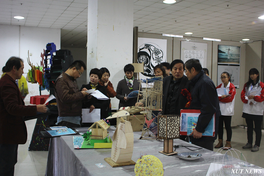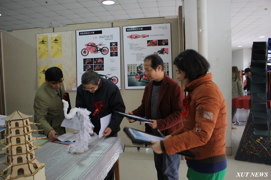 suncitygroup太阳集团网站经理吉晓民教授宣布大赛开幕,并同各位领导和嘉宾前往曲江校区老员工活动中心展厅参观了同学们的作品。评委老师们认真评审了每件作品,并将从所有参赛作品中最终选出获奖作品。
