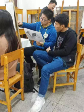 在这里,不同学院不同专业的同学聚在一起相互交流,小老师们与同学们面对面,临摹图片,在素描纸上一笔一笔勾勒着,讲解如何握笔,如何排线,如何精确打形,如何过度明暗,如何点高光。。。。。。这不仅仅是简单的教与学的过程,更是一次人与人之间心灵的碰撞,大家在艺术的殿堂里,共同畅游着!