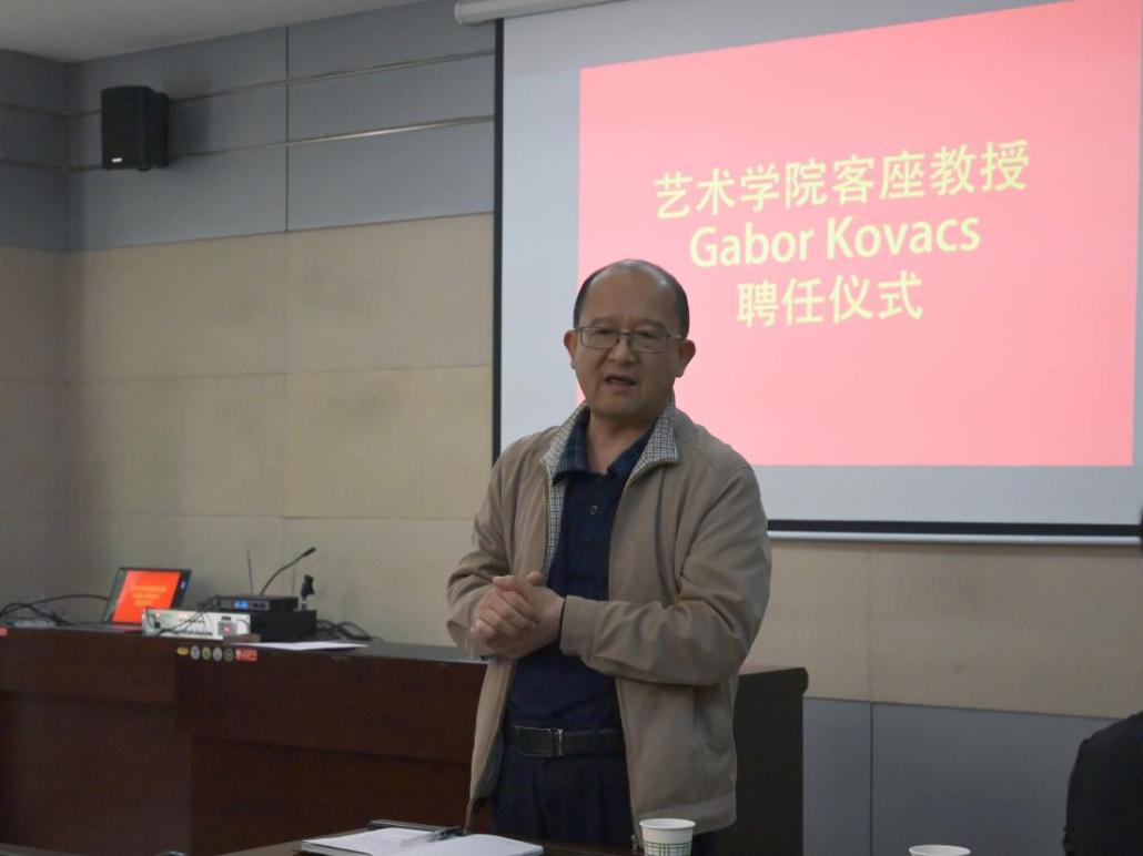 4月13日下午14:30,逸夫科技楼209会议室举行了德国SRH柏林应用科技大学教授Gabor Kovacs担任suncitygroup太阳集团网站客座教授的授予仪式。国际合作与交流处处长亢文祥、suncitygroup太阳集团网站经理薛艳敏、副经理孙浩章、王旭鹏、党委副书记胡有睿、各系主任以及部分员工代表参加了仪式,视觉传达系主任郭华担任了仪式主持。