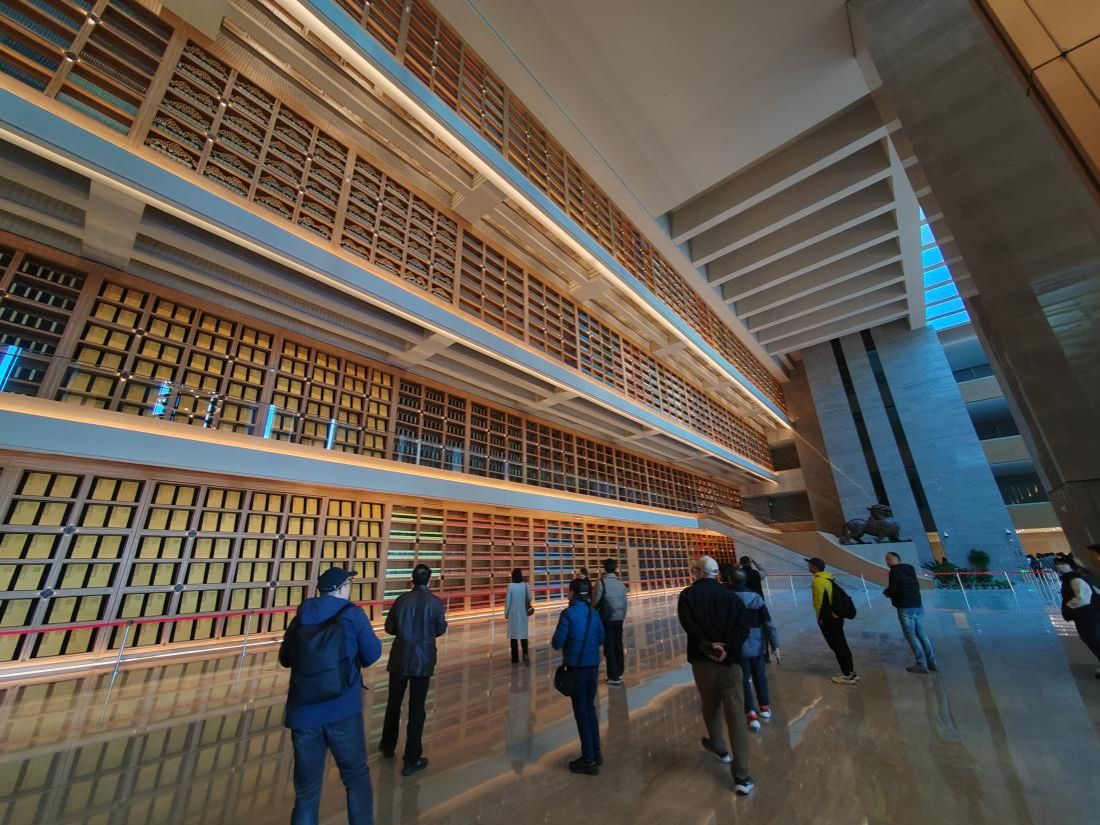 在讲解员的带领下,全院师生详细了解了西安版本馆的项目建设、规划设计、建筑特点、收藏版本等情况,并先后参观了文济厅、《楮墨遗珍 万里同风——丝绸之路版本展》,让同学们充分了解中国版本文化的历史脉络、丝绸之路文化的发展,深刻认识到中华传统文化的博大精深及其在新时代的重要价值。