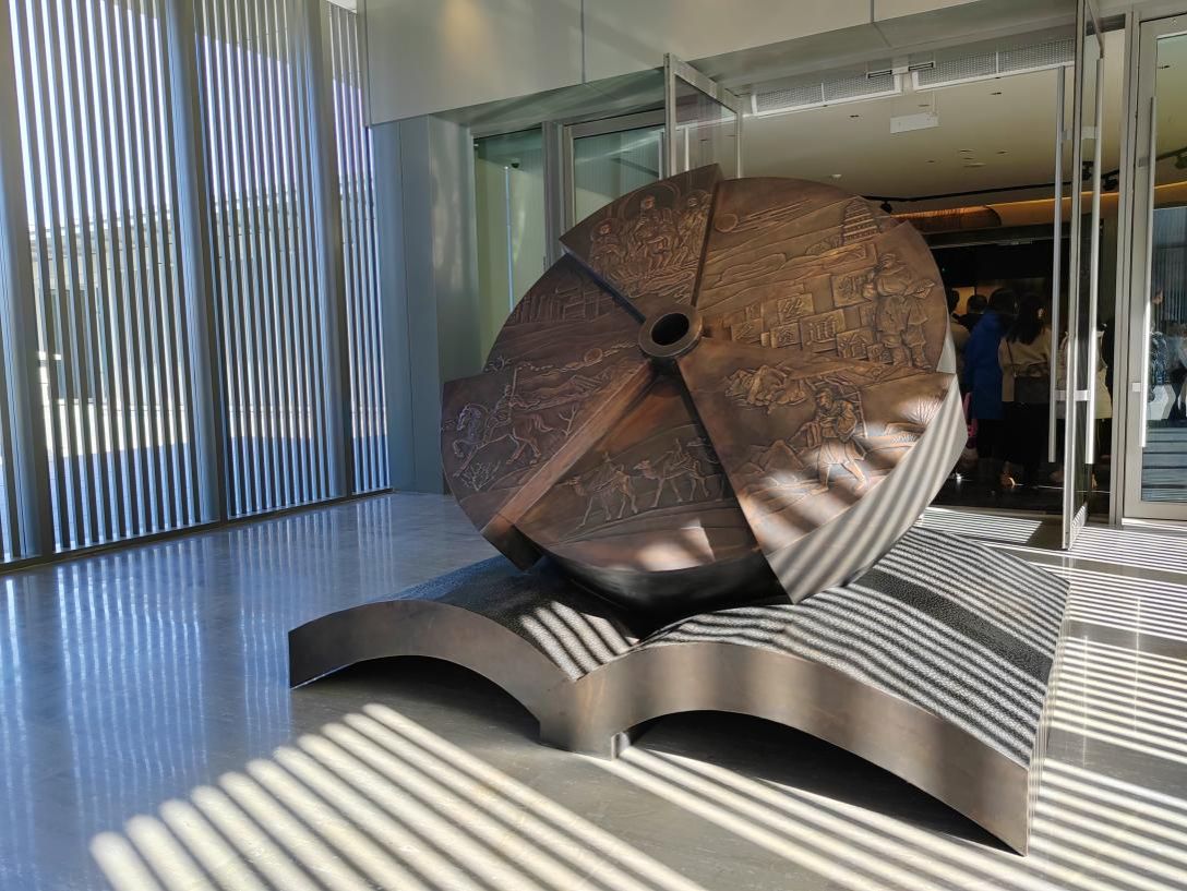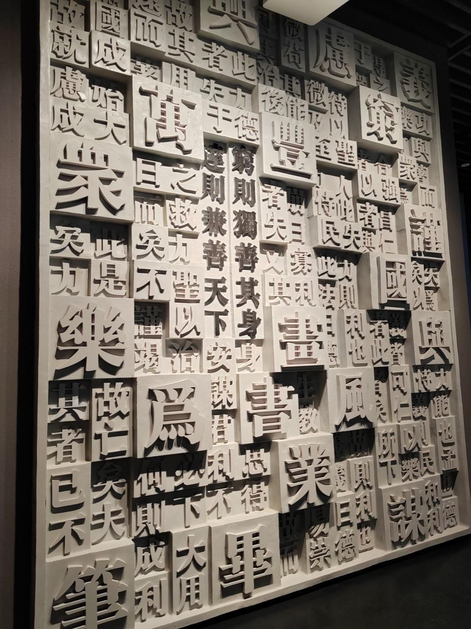 值得一提的是,学院师生也深度参与了西安版本馆的设计和建设,员工江应昌受西安版本馆委托,完成版本馆序厅铜浮雕蚀刻,呈现出古代和现代版本形式与载体的种类与演变,进一步体现了学院艺工同治的办院理念,以及立足西部、服务西部、履行人才培养的职责使命,发挥高校人才培养支撑作用,助力西部地区建设发展。