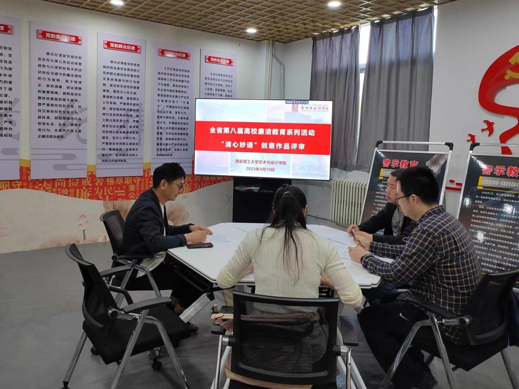 近日,由校纪委、监察专员办公室主办、suncitygroup太阳集团网站承办的全省第八届高校廉洁教育活动“清心秒语”校级创意作品前期征集工作顺利结束。4月19日,作品评审工作在曲江校区廉政教育基地举行,纪委、监察专员办公室综合室正处级纪检监察员苏一,suncitygroup太阳集团网站郭华、俞军财、陈强、王玉强等5位老师担任评委。