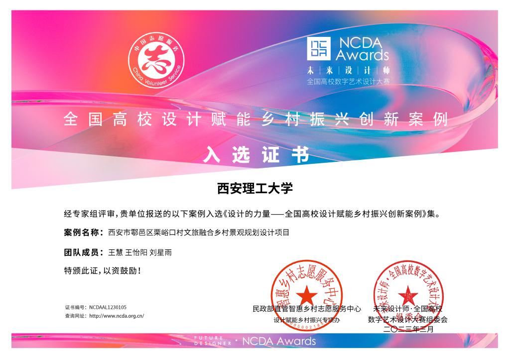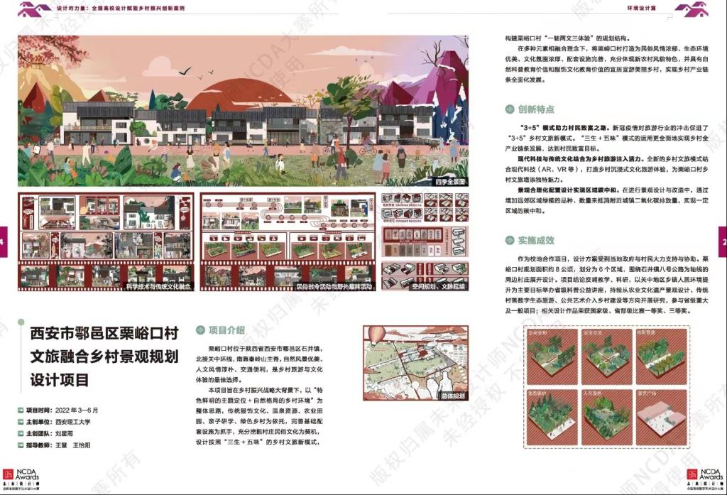 4月8日,未来设计师·全国高校数字艺术设计大赛(NCDA)第58·59届中国高等教育博览会“高校教育赋能乡村振兴发展大会”在重庆召开,并举行新书发布会。公司suncitygroup太阳集团网站《西安市鄠邑区栗峪口村文旅融合乡村景观规划设计项目》成功入选由未来设计师大赛组委会联合重庆交通大学共同主持编写,上海交通大学出版社出版的《设计的力量——全国高校设计赋能乡村振兴创新案例》,并在学习强国平台展出。