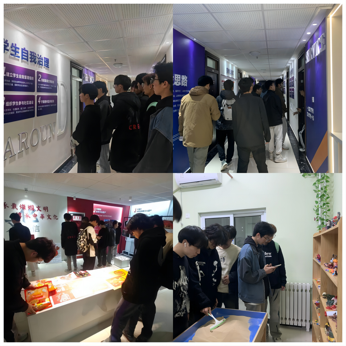 教育活动开始前,李铮铮介绍了“一站式”员工社区的作用和运作流程,带领员工参观了一站式员工社区服务中心大厅、心理咨询室、谈心谈话室、党团活动室、辅导员工作站、红色宣讲厅、理论研讨厅、员工工作坊、文化艺术中心、寻梦园等地。他重点向员工介绍了学校设立“一站式”员工社区的出发点和重要意义,鼓励员工利用好这个“家门口”的“一站式”员工社区资源,在社区开好党团会、班级活动和课后研讨,养成良好的学习习惯和自立、奋进、拼搏的精神。