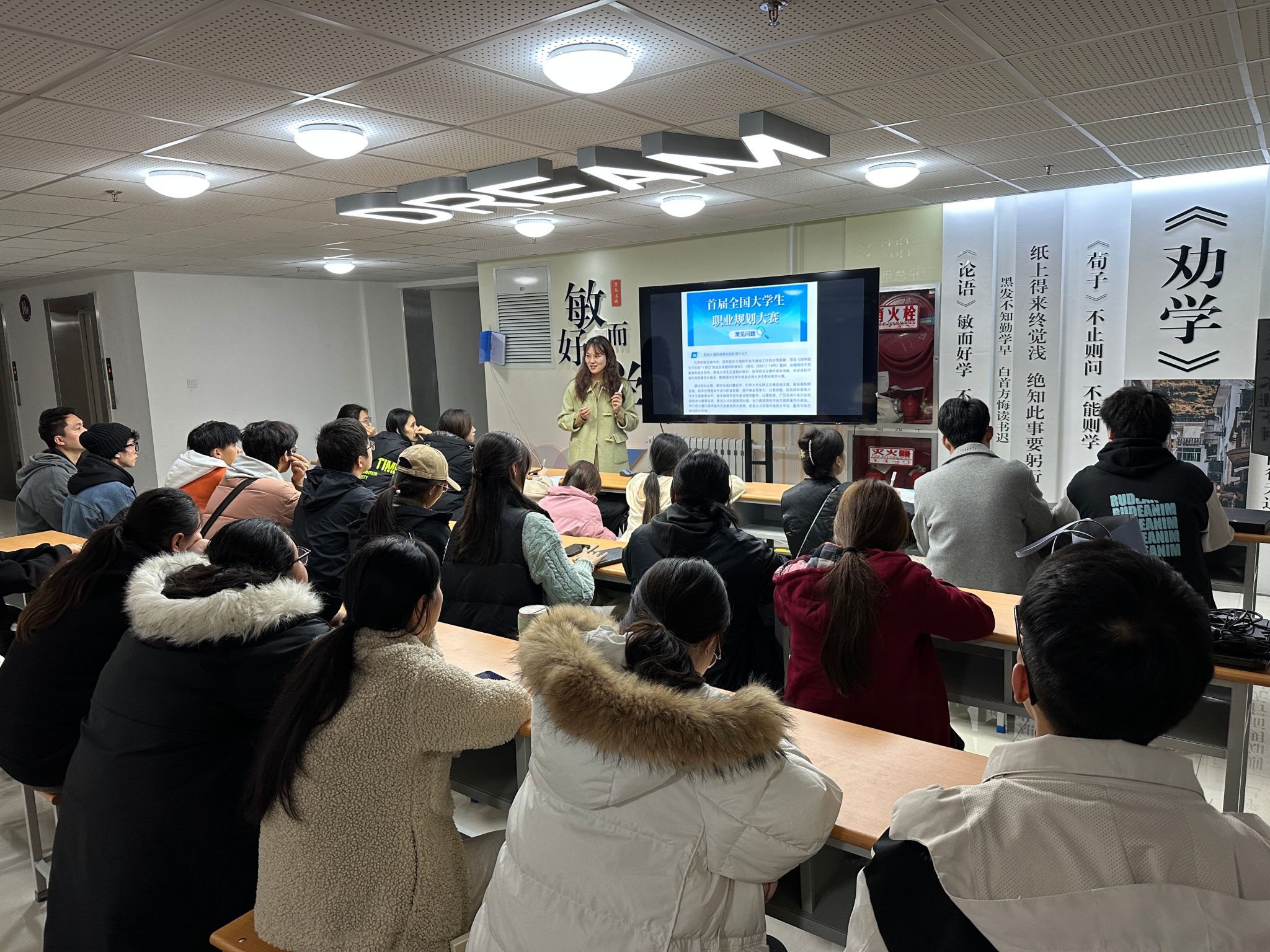 随后,张哲凭借自身多年的就业指导经验,从什么是职业生涯规划、为什么要做职业生涯规划和如何做职业生涯规划三个维度出发,围绕职业兴趣、职业价值观、职业技能等内容,指出同学们要对社会需求和自身需求有精准的了解与定位,并以具体案例告诉参赛同学们应该如何备赛,同时她还希望同学们以参加比赛为契机,在竞技中磨砺和提升,追求进步、追求卓越,实现幸福人生。