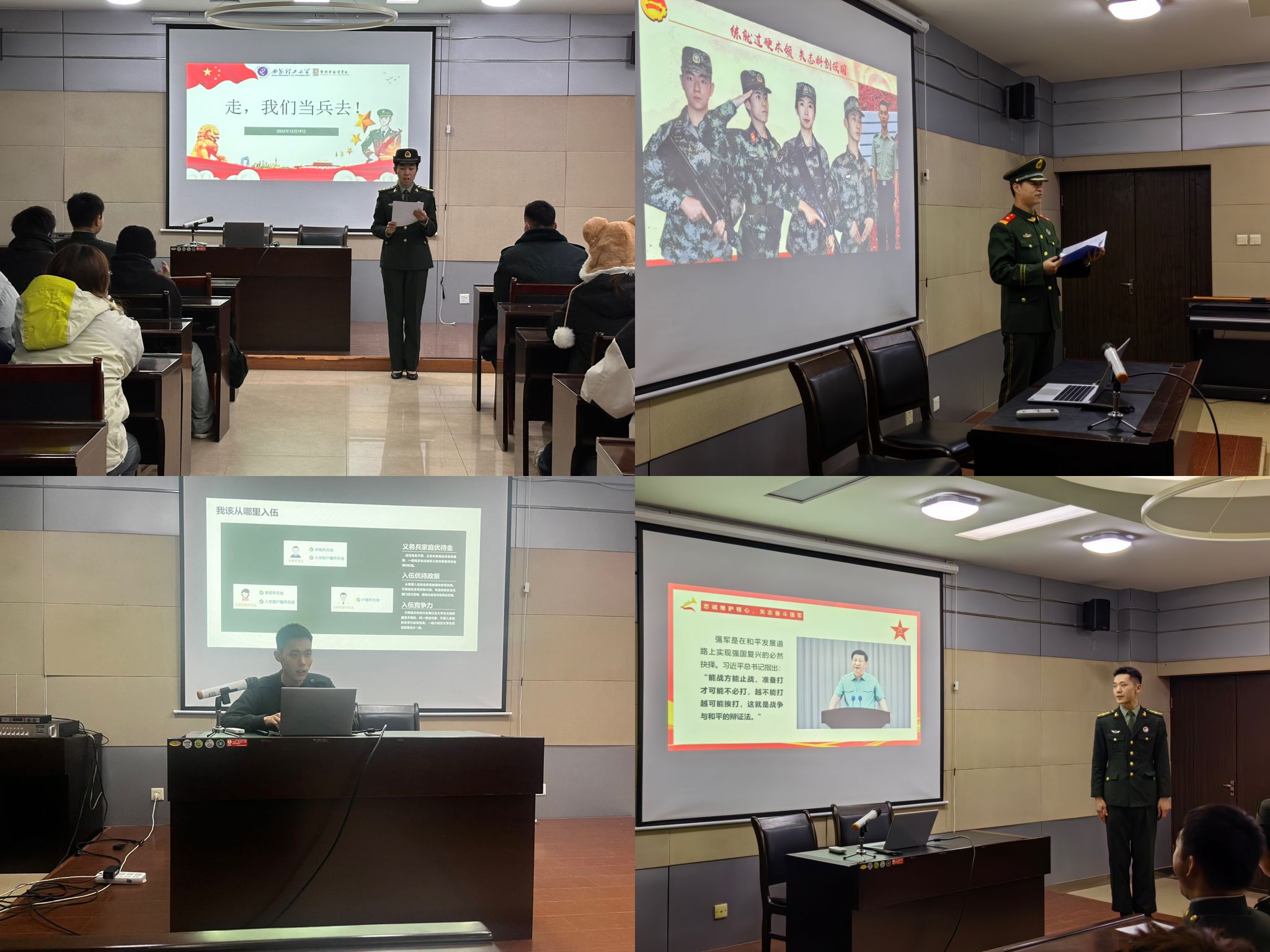 为扎实做好公司征兵宣传工作,帮助员工全面了解老员工入伍条件和优待政策,激发公司员工参军报国热情,12月19日,在艺设楼209开展以“走,我们当兵去”为主题的征兵政策宣讲会。本次宣讲会邀请公司五名退役老员工士兵进行经历分享和政策解读,由辅导员郭旭东主持。