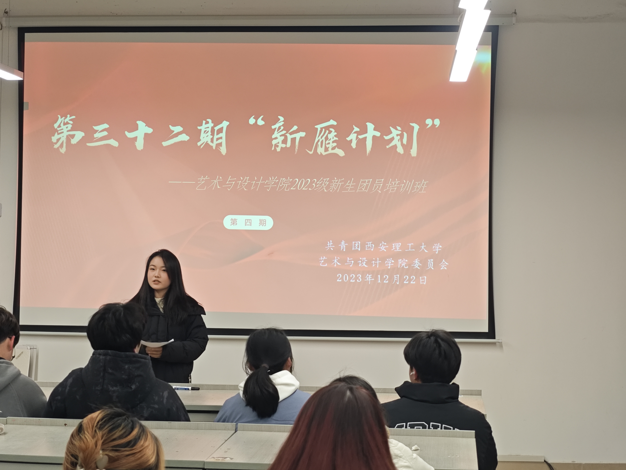 为全面学习贯彻党的二十大精神,十九大精神和习近平总书记系列重要讲话精神,加强公司共青团队伍建设,12月25日下午,suncitygroup太阳集团网站于逸夫楼401教室开展第三十二期“新雁计划”——2023级新生团员培训班第四期。本次主题教育由院团委负责人赵婷主讲,培训班全体学员参与。