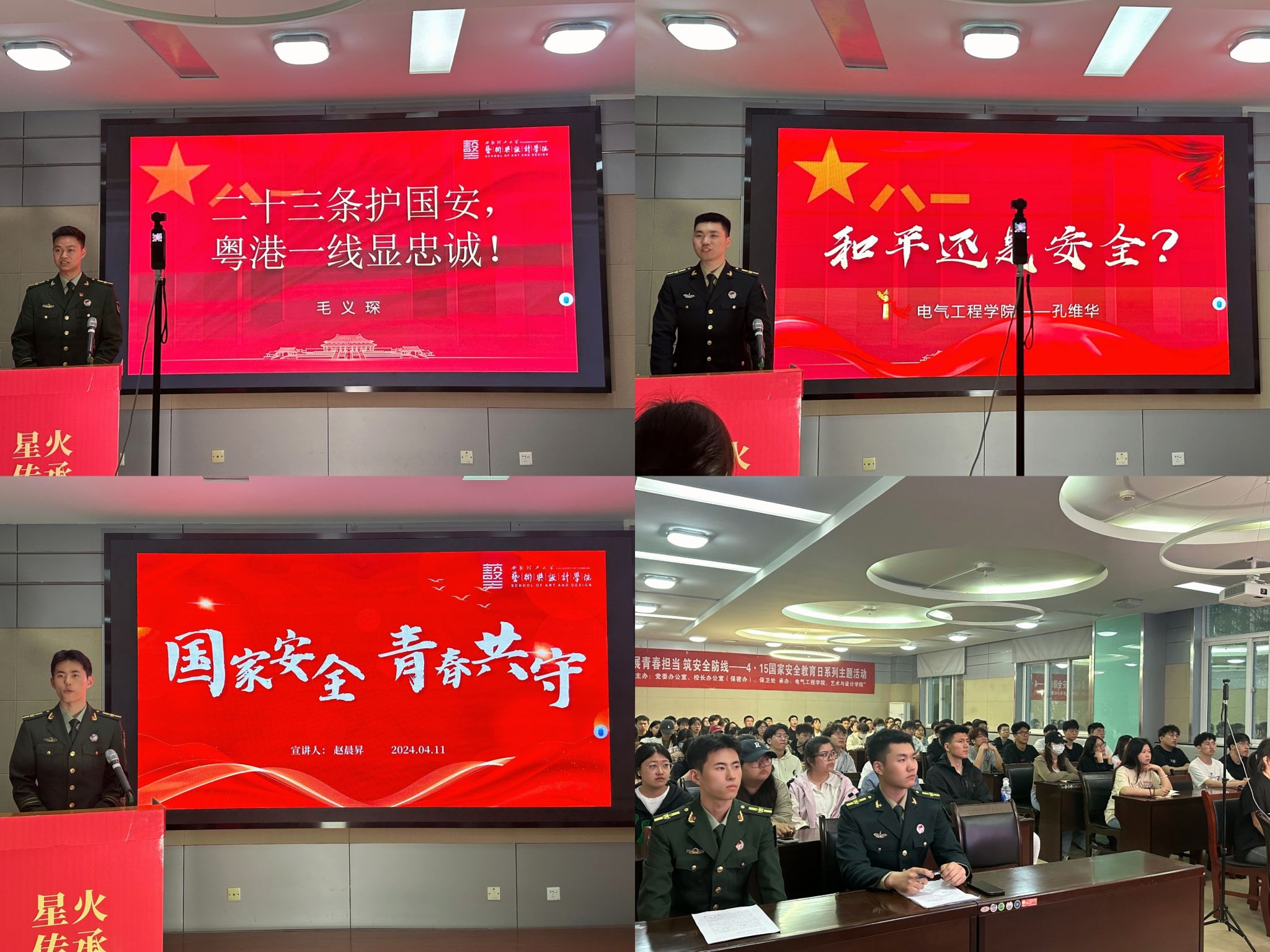 为积极践行总体国家安全观,增强员工国家安全意识,筑牢国家安全防线,4月11日,suncitygroup太阳集团网站联合电气工程学院举办“国家安全,青春共守”主题宣讲会。宣讲会特别邀请了公司优秀退伍员工毛义琛、孔维华、赵晨昇担任主讲嘉宾。