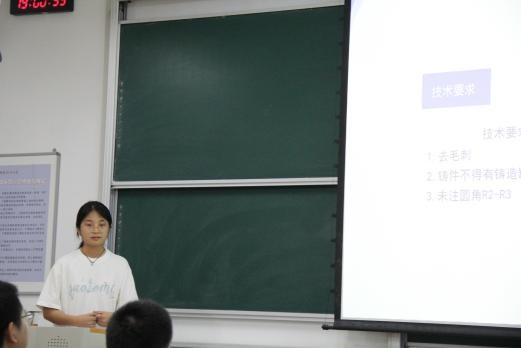 活动中,张一蕊结合工程制图课程的实际应用,围绕基础绘图技巧、复杂图纸的解读等内容进行了分享。她带领同学们回顾了工程制图的基本原理和常用工具,并通过一系列实际应用案例,展示了如何绘制出准确、规范的工程图纸。帮扶活动现场,同学们踊跃发言,就自己遇到的难点和困惑互相交流,在思维碰撞中加深和巩固了对工程制图课程的基本知识和技能的掌握。