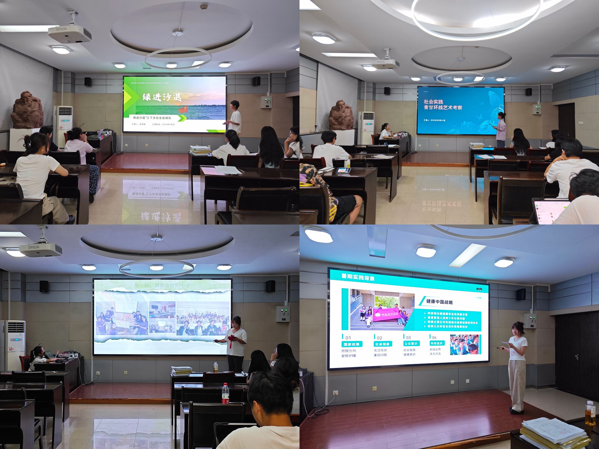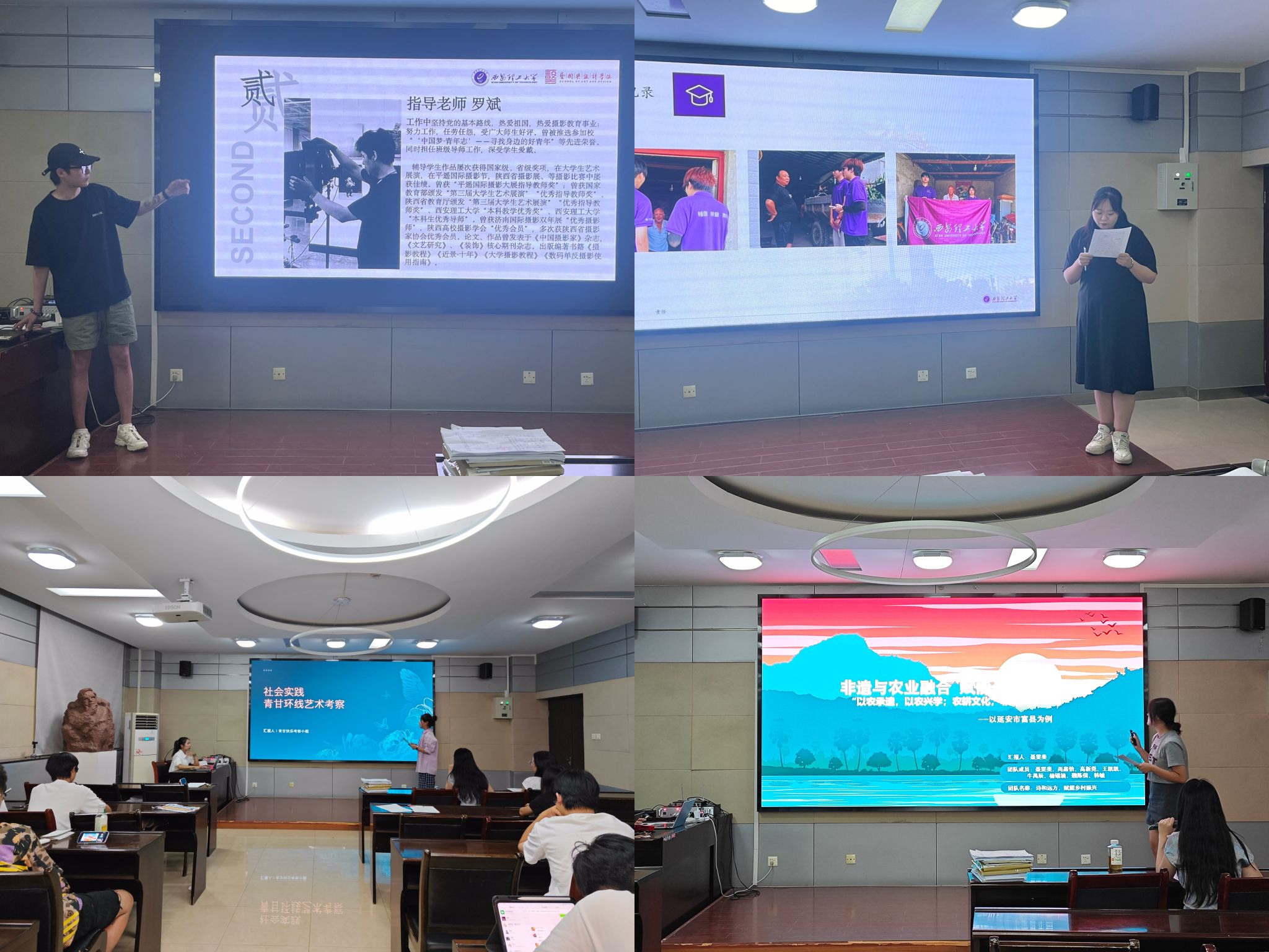 答辩环节,各团队紧扣时代脉搏,聚焦民生关切,结合专业特色,围绕实践背景、实践内容、实践成果等方面,通过PPT展播、视频播放、实物演示等多种形式展示了团队社会实践风采。答辩展示结束后,两位老师根据不同实践主题与同学们就实践项目的创新性、可行性、成果内容等方面进行交流,并提出指导意见。