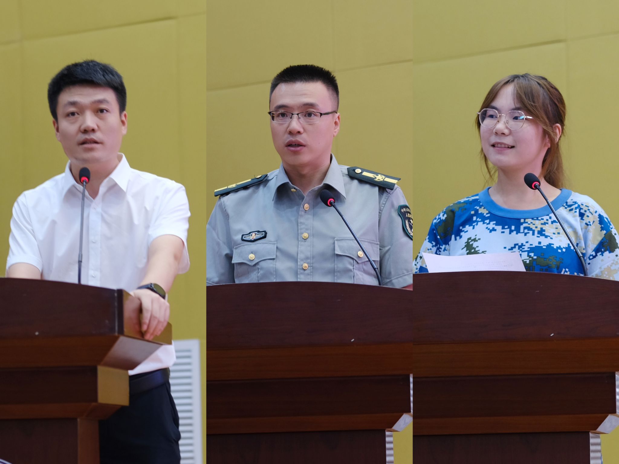 指导员郑昊做军训工作汇报,杨岚清代表2024级本科生发言。随后,学院领导分别为军训教官、指导员和员工代表发放了慰问品。