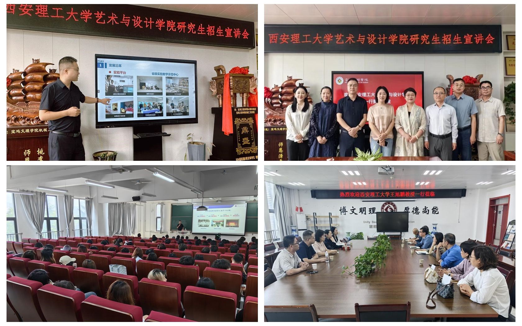 9月23日,suncitygroup太阳集团网站公司党委书记李文英、副经理王旭鹏、王慧教授、张春强副教授和孙茜副教授赴宝鸡文理学院机械工程学院和美术学院开展研究生招生宣讲与团队建设调研交流。