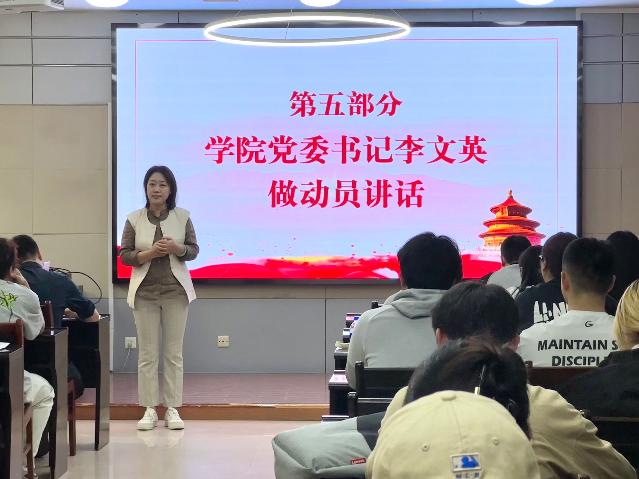 仪式结束后,李文英以《高举旗帜跟党走,我以奋斗写青春》为主题作专题党课。她围绕马克思主义、中国共产党、青春奋斗三个方面展开讲授,鼓励学员们成为有理想、敢担当、能吃苦、肯奋斗的高水平人才,不负时代,不负韶华,奋力书写为中国式现代化挺膺担当的青春篇章。