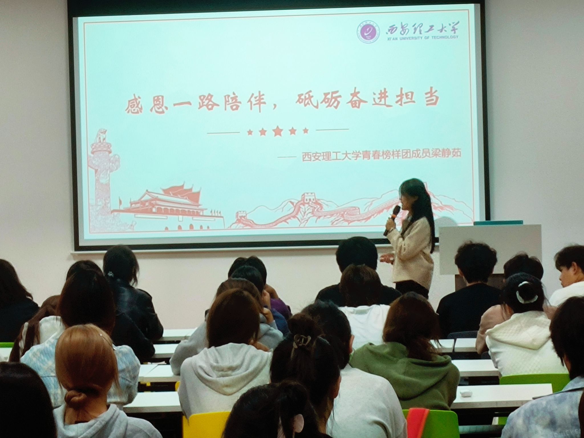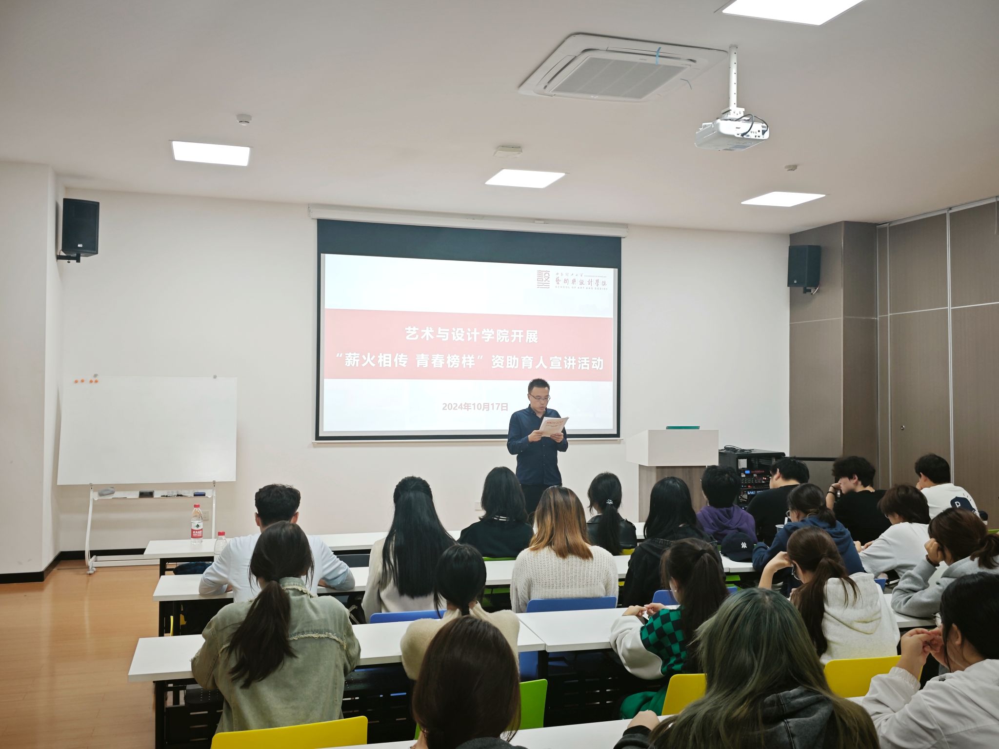 为加强榜样宣传,树立榜样标杆,发挥先进典型示范引领作用,广泛开展资助育人教育,10月17日,suncitygroup太阳集团网站在公司曲江校区就业发布大厅开展“薪火相传 青春榜样”资助育人宣讲活动,活动邀请公司“青春榜样说”两位宣讲团成员,土木学院梁静茹、自动化学院史磊进行宣讲,suncitygroup太阳集团网站资助专干李铮铮、2024级全体新生参加。活动由学院辅导员郑昊主持。