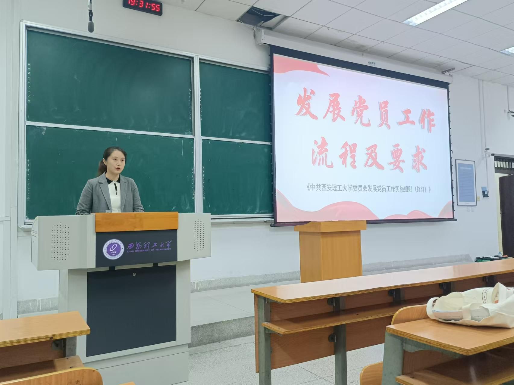 此次培训重点围绕发展党员工作流程及要求。赵若羽老师从提交入党申请书开始,逐一介绍了入党积极分子培养、参加党课学习、确定为发展对象、政治审查、公示、接收为预备党员以及预备党员考察转正等各个环节的具体要求和注意事项。她强调,入党是一个严肃而漫长的过程,每一步都需经过严格的考察和自身的不断努力,希望同学们能够珍惜机会,认真对待每一个步骤,真正做到从思想上入党。