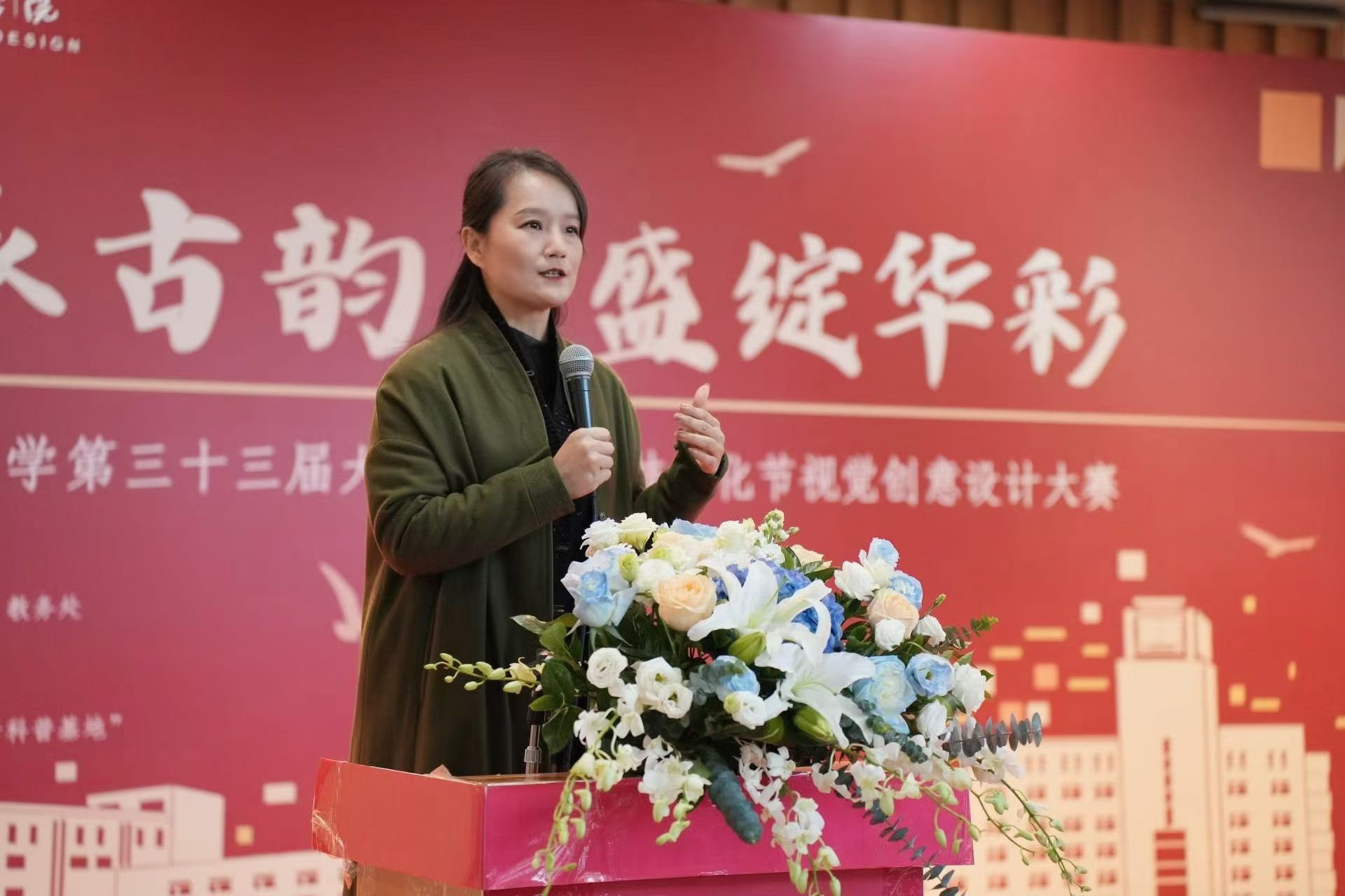 公司经理薛艳敏在致辞中深情寄语,介绍了视觉创意大赛的历史及在学院员工培养中的重要意义。她表示,大赛是同学们展现自我才华、交流学习心得的平台,她鼓励同学们充分释放自己的想象力与创作力,以智慧为笔,以灵感为墨,创作出更多饱含灵魂、富有感染力的优秀作品。