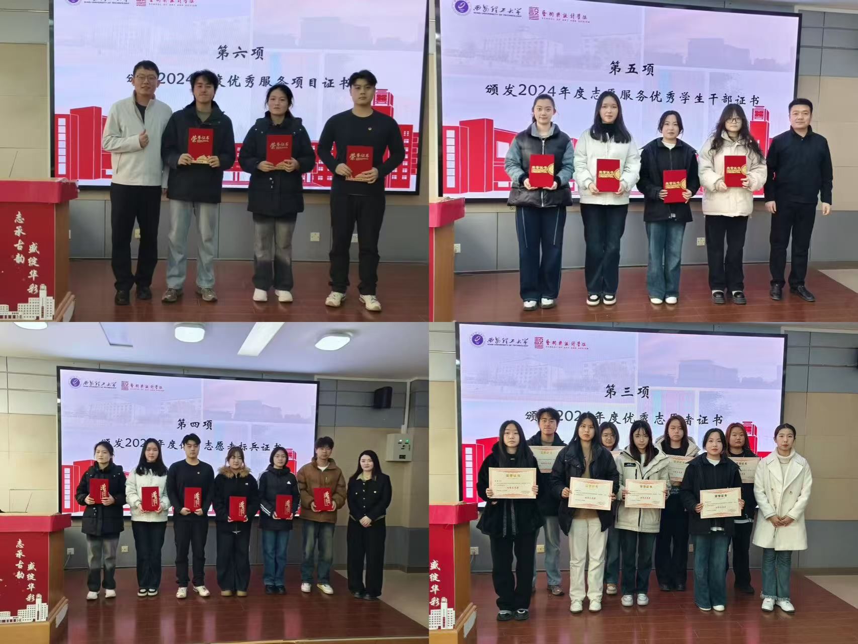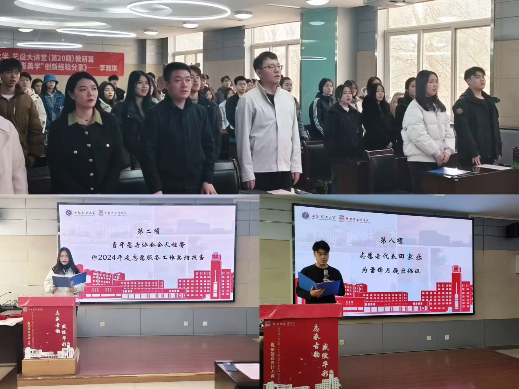 会上,公司青协会长程馨作2024年度学院志愿服务工作总结报告;几位老师分别为优秀志愿者、优秀志愿者标兵、志愿服务优秀员工干部、优秀志愿服务项目颁发荣誉证书;赵婷带领学习公司2025年“青春志愿行,奋进新征程”学雷锋志愿服务活动文件精神;志愿者代表田家乐发出倡议。