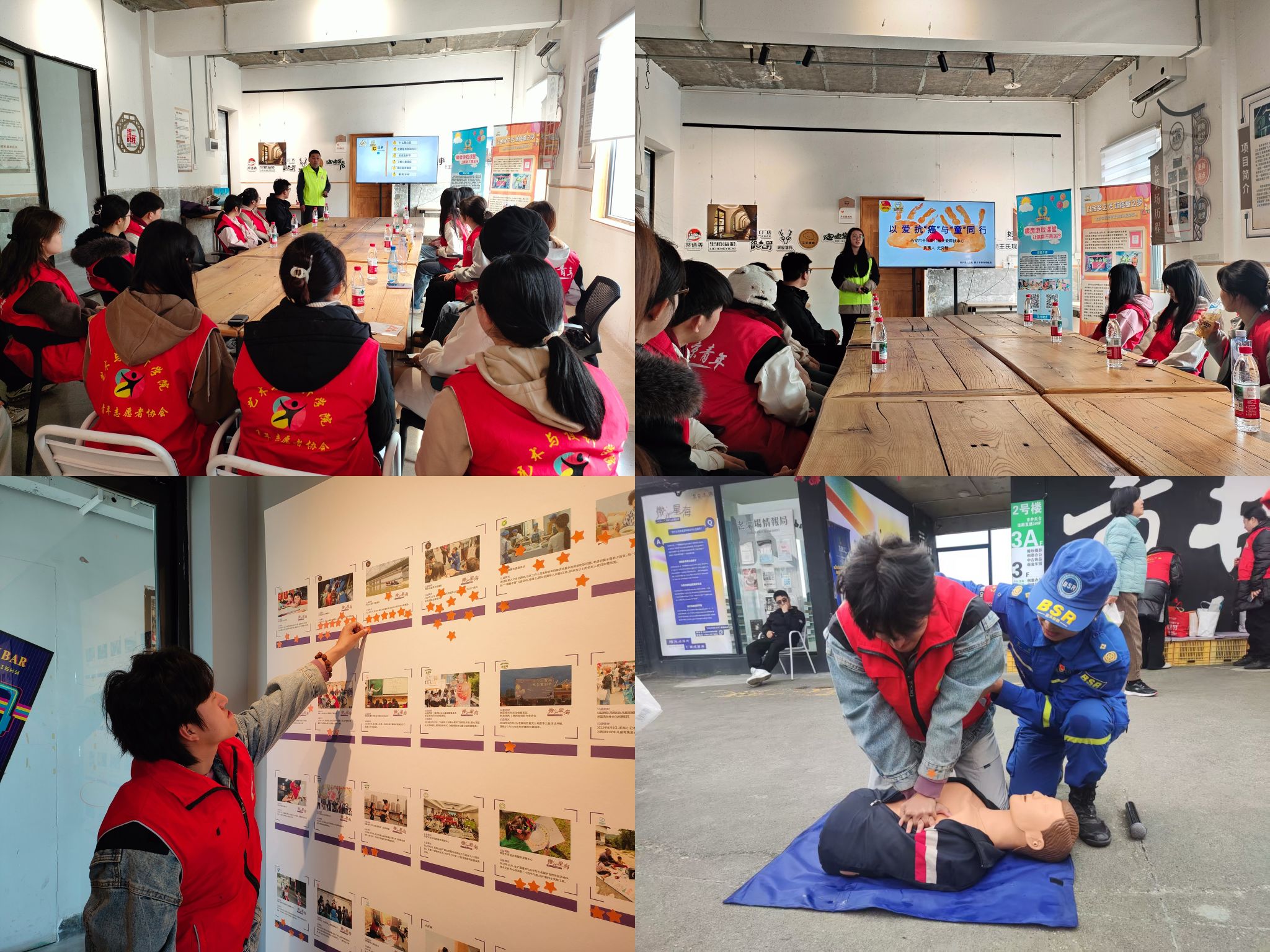 活动伊始,金丝带儿童关爱帮扶中心史老师为志愿者们讲解特殊儿童群体特点及志愿服务要点,深化志愿者对特殊群体的认知与共情。随后,志愿者们参观了“微光星海·西安公益摄影展”,透过镜头捕捉公益路上的动人瞬间,感受艺术传递的温暖力量。活动最后,蓝天救援队专业人员为志愿者开展心肺复苏及AED使用技能培训,通过理论讲解与实操演练,提升志愿者的应急救护能力。