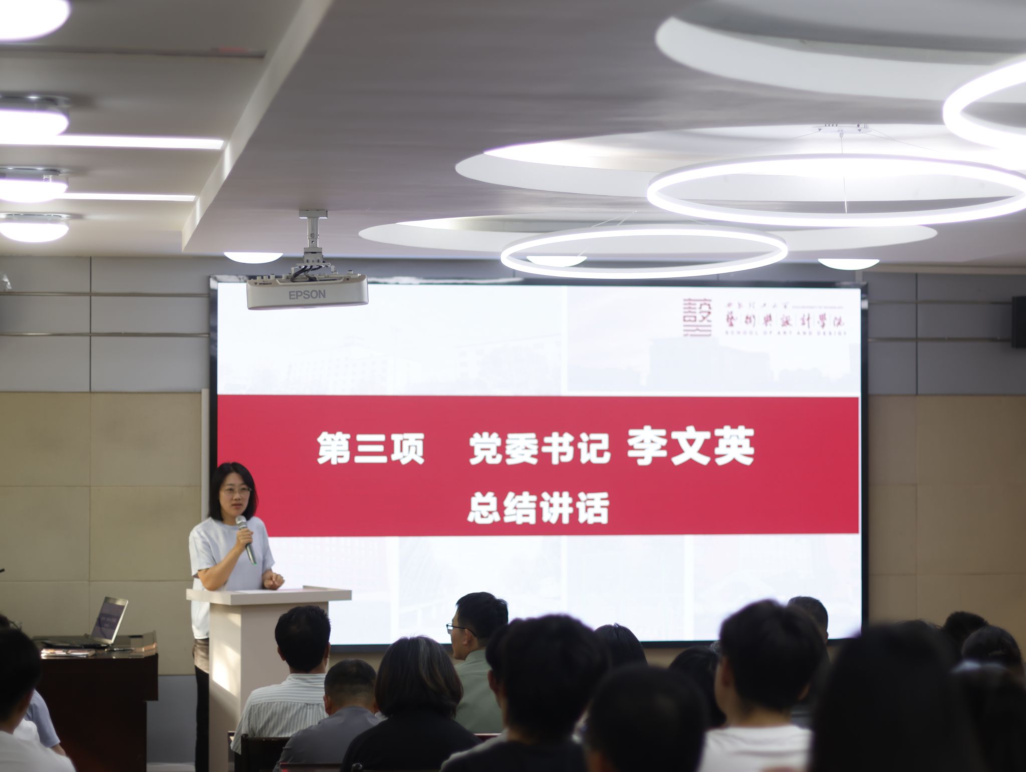 李文英进行总结讲话,她对新生表示欢迎和祝贺,有并提出三点“希望”。一是以“德”为基,让创作扎根时代土壤,守住道德底线、涵养家国情怀;二是以“创”为魂,在传承中突破边界,主动拥抱新技术、新视角;三是以“行”为要,在实践中锤炼品格,用才华书写青春答卷。她祝福同学们成为有情怀、有创意、有担当的艺术与设计人才。