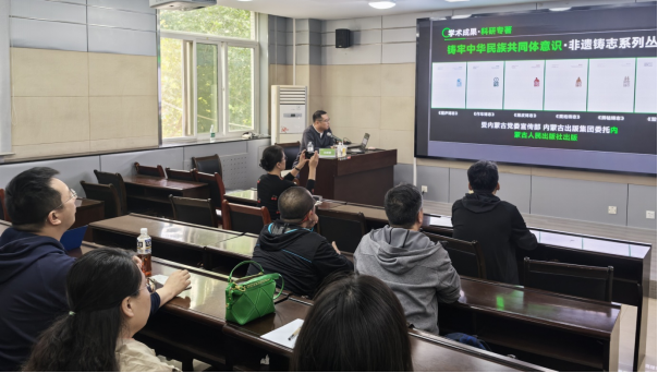 王赫德教授以《牧歌不落:中国北疆传统技艺——当代守望者》为题,结合其主持的国家艺术基金2025年度传播交流推广资助项目《共铸中华:内蒙古特色工艺美术作品巡展》的申报实践,围绕“项目选题与依据”“项目价值与意义”“项目特色与亮点”等关键维度展开系统讲解。他立足“艺术+科技”融合视角,深入阐释如何在坚守中华文化立场的基础上,以创新表达赋能传统技艺的当代传播,为公司教师拓展了跨学科研究的思路与方法。