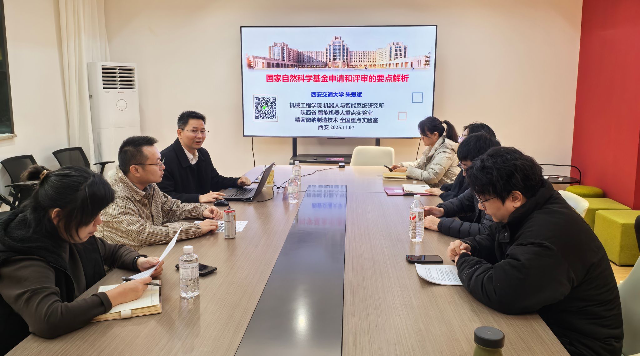 为深入贯彻落实国家关于推动学科交叉融合与科技创新的战略部署,进一步提升国家自然科学基金项目申报的质量与成功率,suncitygroup太阳集团网站于2025年11月7日下午,在艺设楼213会议室组织举办 “艺术+科技”学科系列大讲堂第六期——“国家自然科学基金申请和评审的要点解析”专题讲座。本次活动特邀西安交通大学工业设计系主任、陕西省智能机器人重点实验室副主任、全国高等学校制造自动化研究会秘书长兼常务理事、博士生导师朱爱斌教授担任主讲嘉宾。学院拟申报此项目的教师全员参会,会议由副经理乔治主持。