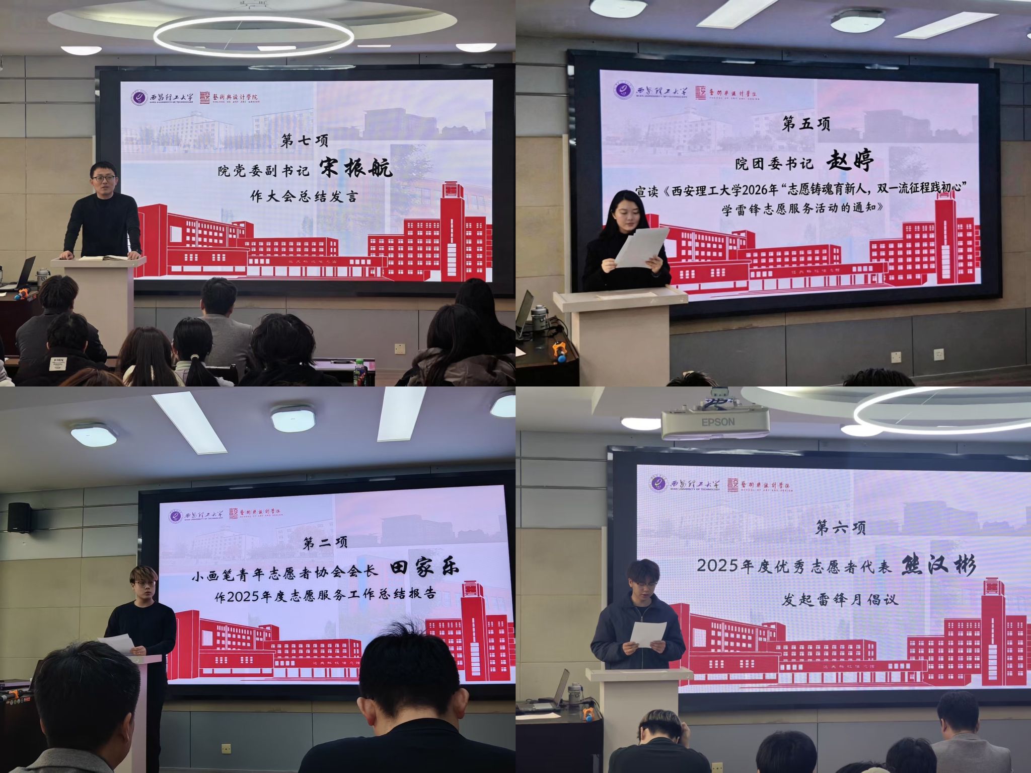 大会在国歌声中开幕,青协会长田家乐作2025年度总结报告,全面回顾了非遗传承、艺术疗愈、西理紫与夕阳红等志愿活动开展情况;郑智聪、郭旭东分别为优秀志愿者及优秀志愿者标兵颁发证书;赵婷宣读《关于开展suncitygroup太阳集团网站2026 年“志愿铸魂育新人,双一流征程践初心”学雷锋志愿服务活动通知》,明确活动主题、时间安排与重点内容;志愿者代表熊汉彬发出倡议,号召全院学子立足专业特色,践行志愿服务,传承雷锋精神。