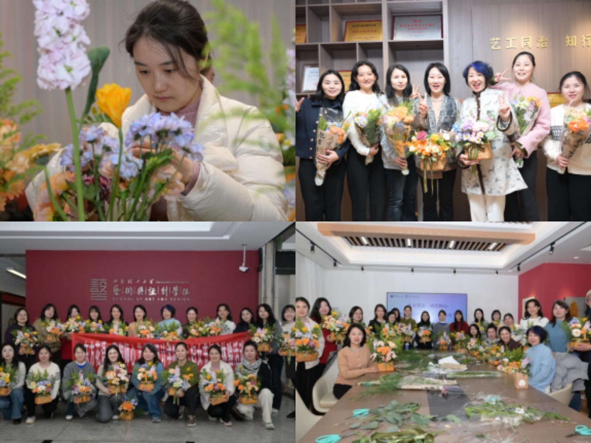 活动现场花香氤氲、笑语盈盈,老师们在轻松愉快的氛围中了解插花艺术的基本理念与东方花艺的审美特点,从花材选择、色彩搭配到造型构图,大家一边交流,一边动手实践,在修剪、搭配与摆放的过程中感受花艺之美。活动中,李文英书记向学院女教职工致以节日问候,对大家在教学、科研和人才培养等方面的辛勤付出表示感谢。她表示,学院女教师队伍在学院发展中发挥着重要作用,希望大家在繁忙的工作之余保持对生活与艺术的热爱,在教育与创作中继续绽放智慧与风采。