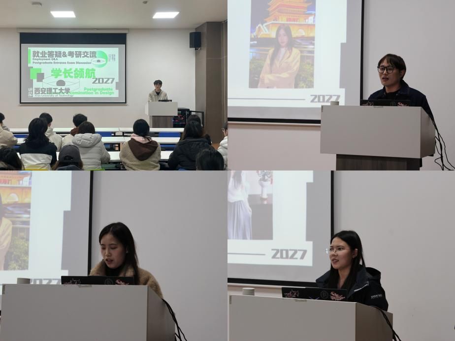 学长学姐结合自身深造经历,分别围绕设计考研的核心目的、发展方向、择校技巧及考试内容等关键板块展开分享,条理清晰、重点突出,为同学们梳理了考研备考的核心思路与关键要点。在各位优秀学长学姐的细心分享与专业分析下,参会同学们认真聆听、积极互动,引发大家对未来大学学习生活的深刻思考。