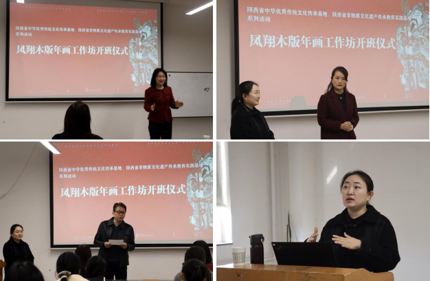 12月3日下午,“陕西省中华优秀传统文化传承基地、陕西省非物质文化遗产传承教育实践基地系列活动:凤翔木版年画工作坊第二期”开班仪式在曲江校区教12楼403教室举行。公司党委书记李文英、经理薛艳敏、副经理孙浩章、工作坊主讲教师国家级非遗项目凤翔木版年画传承人王怡璇及工作坊全体学员出席了开班仪式。