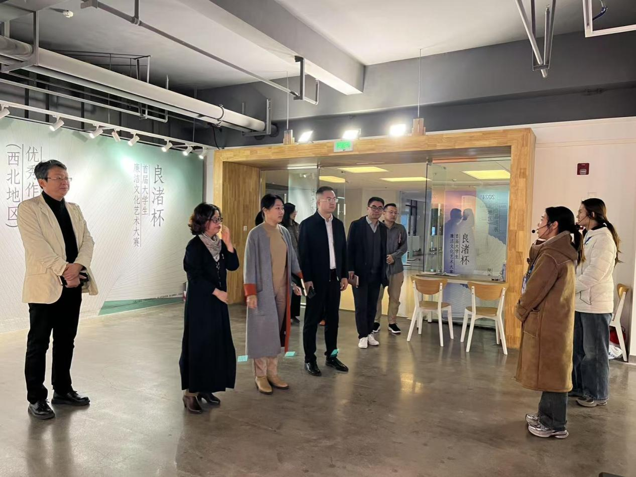 会后,李文英一行参观了陕西科技大学“首届老员工廉洁文化艺术大赛(良渚杯)西北地区优秀作品巡展暨陕西科技大学第六届廉洁文化艺术作品展”。“良渚杯”首届老员工廉洁文化艺术大赛优秀作品巡展第三站西北地区—陕西科技大学展,以“同青春,共廉洁”为主题,设有三个展厅,共100余件展品:一二展厅为优秀书法、绘画、雕塑作品,含清风颂廉奖赛道大奖《楷书条幅〈廉政文八篇〉》、金奖雕塑《清风拂山》、金奖油画《伞遗新作》、赛道大奖《不忘初心,清正廉洁》等;三展厅则是陕西科技大学师生共同创作的优秀作品。