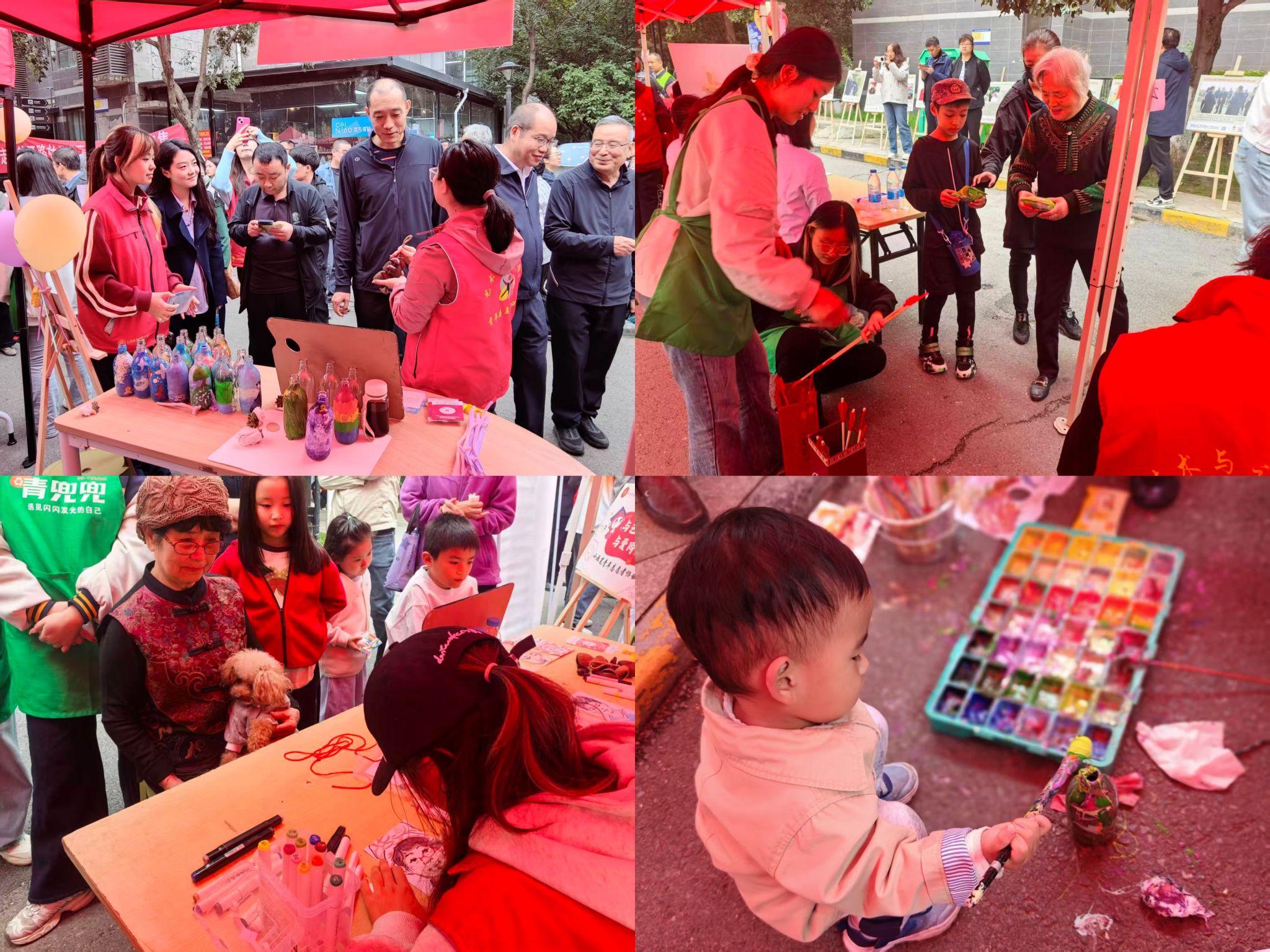 本次活动以艺术专业为特色,设置了五大互动区域:肖像画区现场创作50余幅生动作品;环保义卖区与“金丝带”公益组织合作,展出的彩绘玻璃瓶作品受到居民欢迎;中国结教学区传承非遗技艺;种子摇铃区促进亲子互动;投壶游戏区传递传统文化乐趣。活动期间,西安市相关领导亲临指导,在听取汇报后对活动的创意设计和社会意义给予高度评价,认为这种艺术与公益相结合的模式具有示范价值。