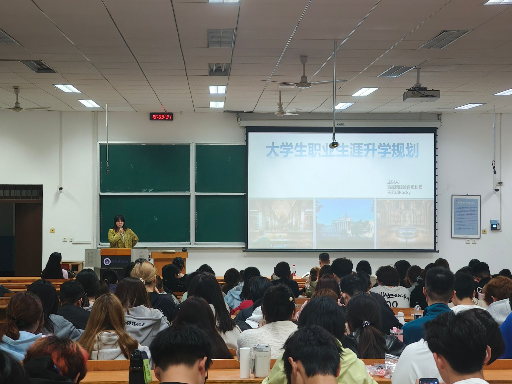 主讲人王若琪老师围绕艺术专业就业趋势、企业面试常见问题及大学四年学业规划等关键内容展开系统讲解,为同学们梳理了学业发展与职业准备路径。讲座结束后,赵婷鼓励同学们要尽早树立规划意识,将个人成长与国家社会发展需要紧密结合,珍惜大学时光,夯实专业基础,全面提升综合能力。