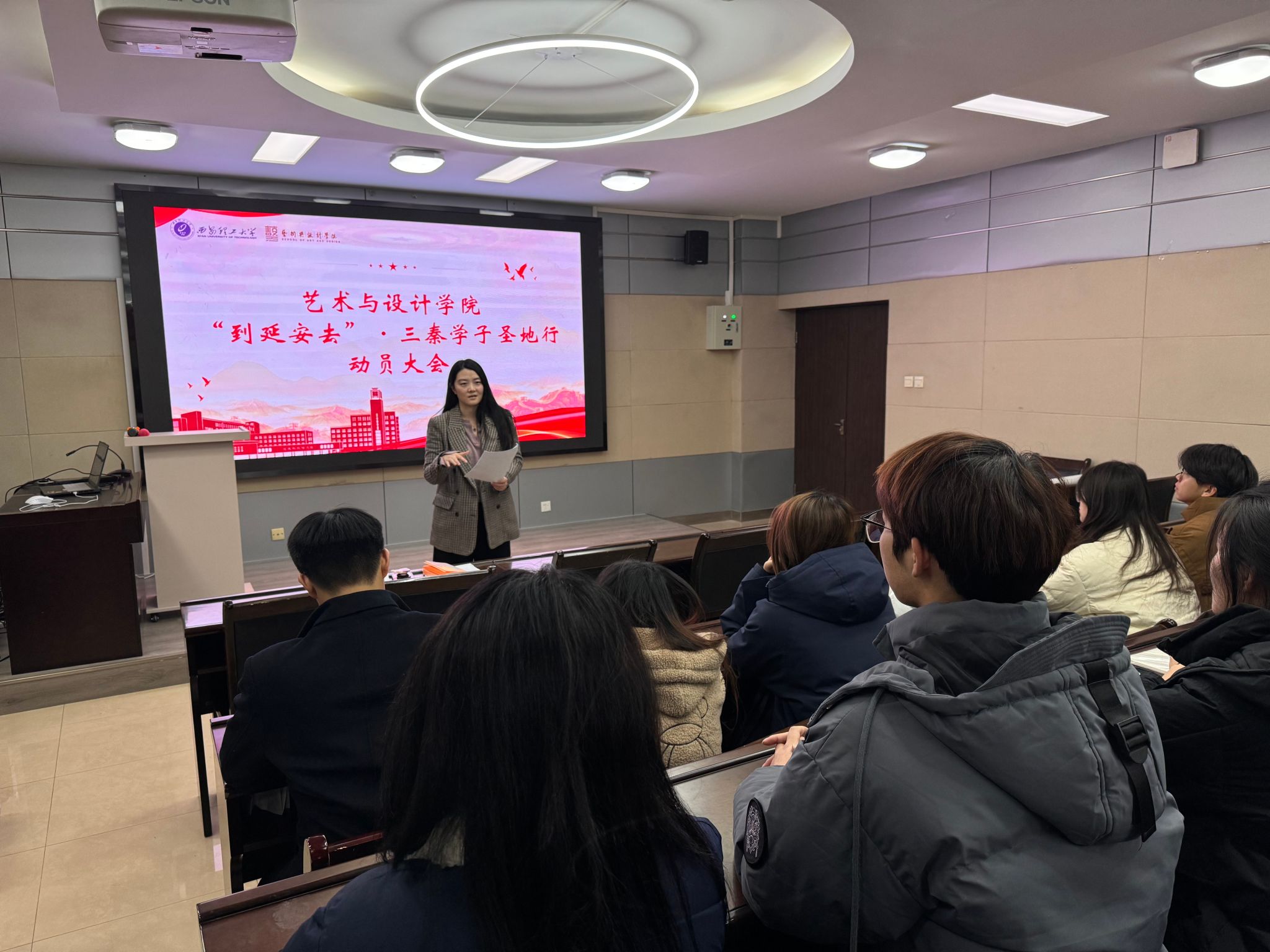 赵婷围绕活动安排、人员管理、行程规范、纪律要求及注意事项作详细讲解,强调此次圣地行是传承红色基因、厚植家国情怀的重要实践,对锤炼学子品格、激发创作灵感具有重要意义。她要求全体员工严格遵守行程安排,珍惜实地学习机会,深度感悟延安精神的时代内涵,在参观学习中结合专业思考,将红色精神内化于心、外化于行,真正做到学有所获、思有所悟。